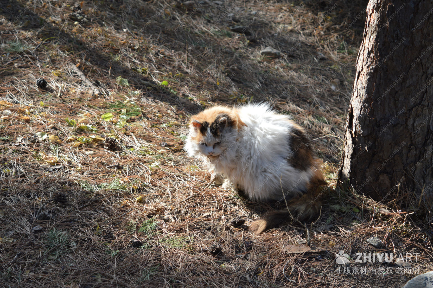 三色猫静卧树下